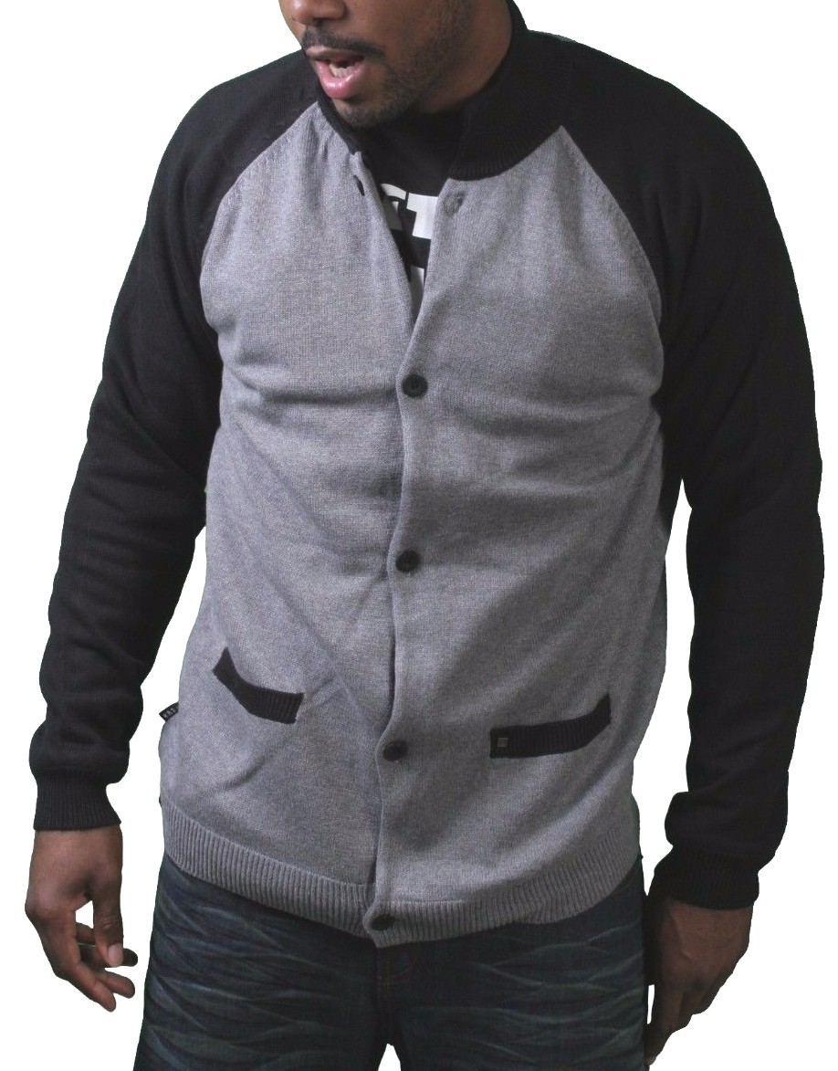 Kr3w Uomo Grigio Nero Cotone Bridgeton Maglia con Bottoni Cardigan Inverno Felpa
