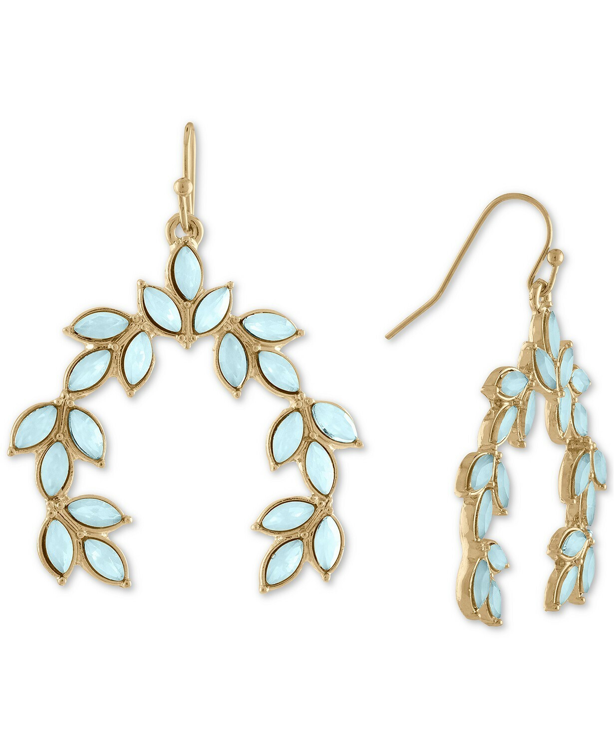 Le foglie di pietra colorate sono disposte ad arte in un design a ferro di cavallo su questi favolosi orecchini a goccia creati da Rachel Rachel Roy.