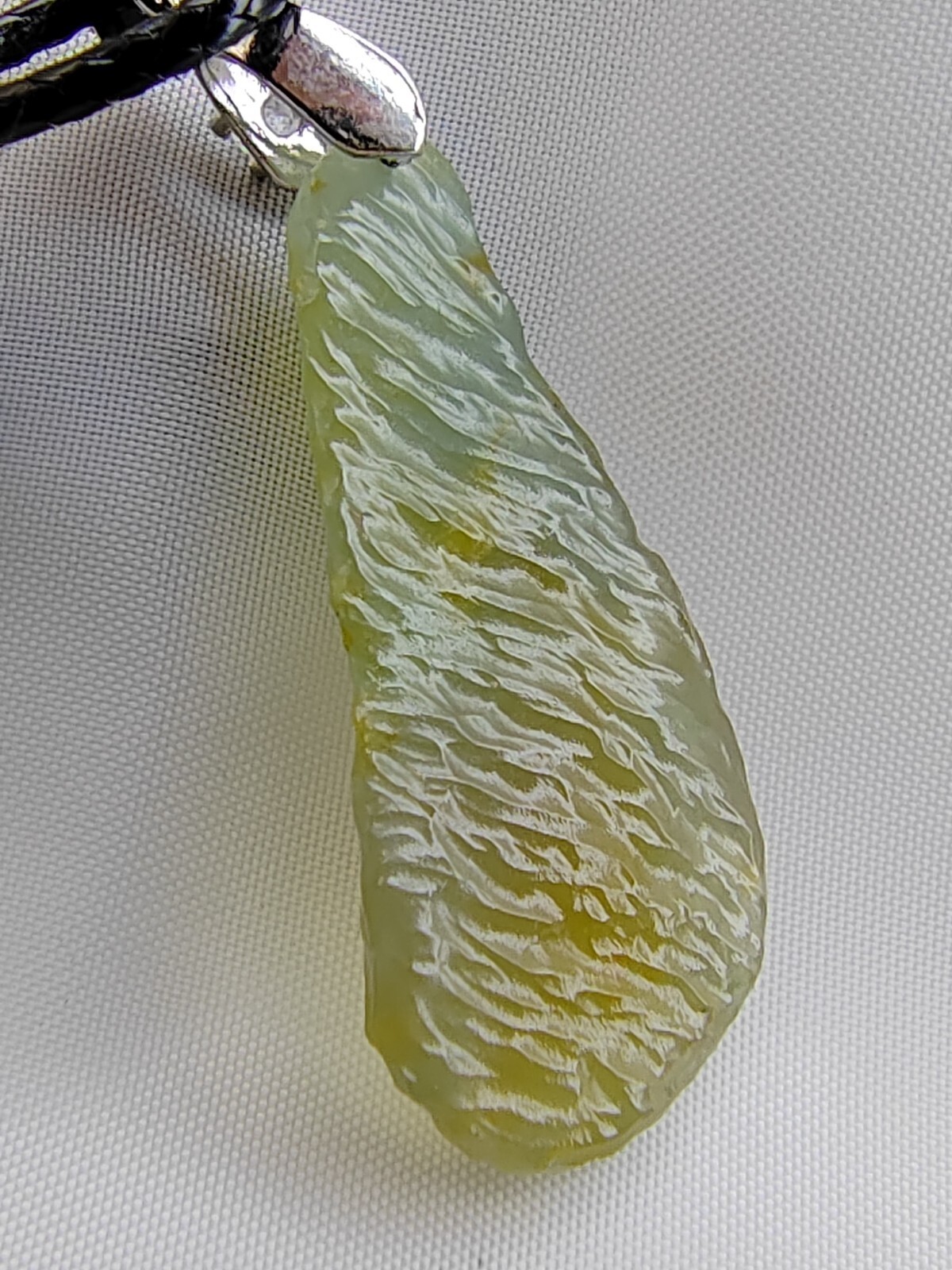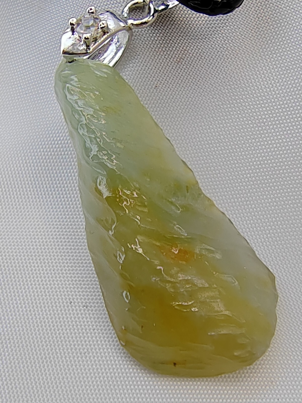 This jadeite pendant is truly a treasure, hailing from Burma with its ice-yellow jade variety. It boasts a natural and uncarved form, polished to reveal its unique original texture. The jade is exquisitely fine, highly responsive to light, and adorned with a distinctive natural abstract pattern. Known as the "peace pendant," it symbolizes safety and well-being for its wearer. Measuring approximately 36.00mm 16.50mm 7.60mm and weighing around 5 grams, equivalent to 40 carats, it comes with an A-grade jade certificate, ensuring its authenticity and collectible value. Jadeite, known as the "King of Stones," is highly sought after due to its rarity. This pendant is not only an artwork but also a gem in the jewelry world. Its natural form and abstract pattern endow it with unique beauty and collectible value, while the symbolism of "peace pendant" adds mystery and auspiciousness. Whether admired for its unique beauty or cherished for its blessings, this pendant is worthy of collection and appreciation. It represents the crystallization of art and jewelry, carrying people's good wishes for peace and happiness, becoming a precious spiritual asset.