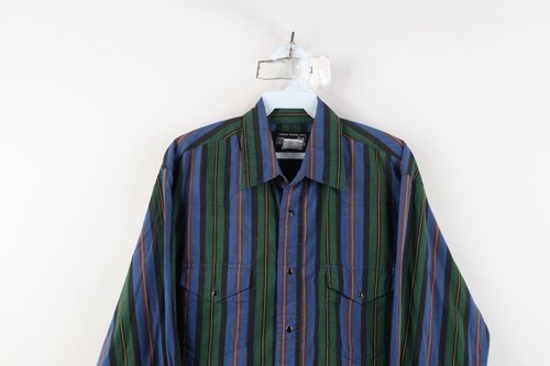 Vintage 90s Wrangler Mens Medium Striped Western Cowboy Brushpopper Button Shirt