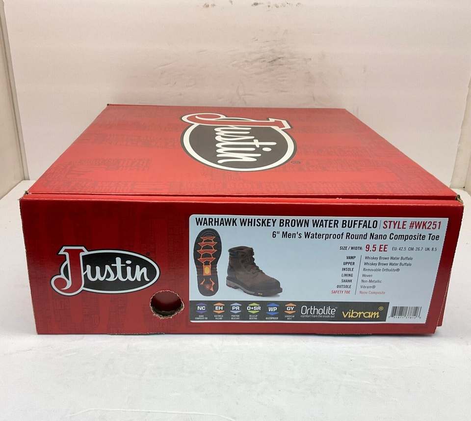 Justin Men's 6” Warhawk Waterproof Nano Comp. Toe Work Boots Whiskey Size 9.5EE