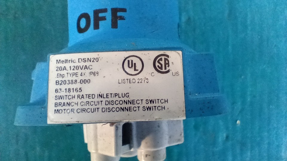Meltric 63-18165 20Amp 120VAC Inlet/Plug DSN20 Type 4X, IP69