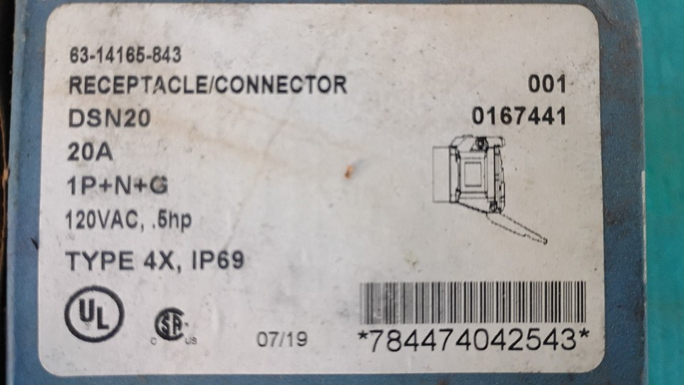 Meltric 63-14165-843 DSN20 Receptacle, Type 4X IP69, 1P+N+G, 20A, 120 VAC