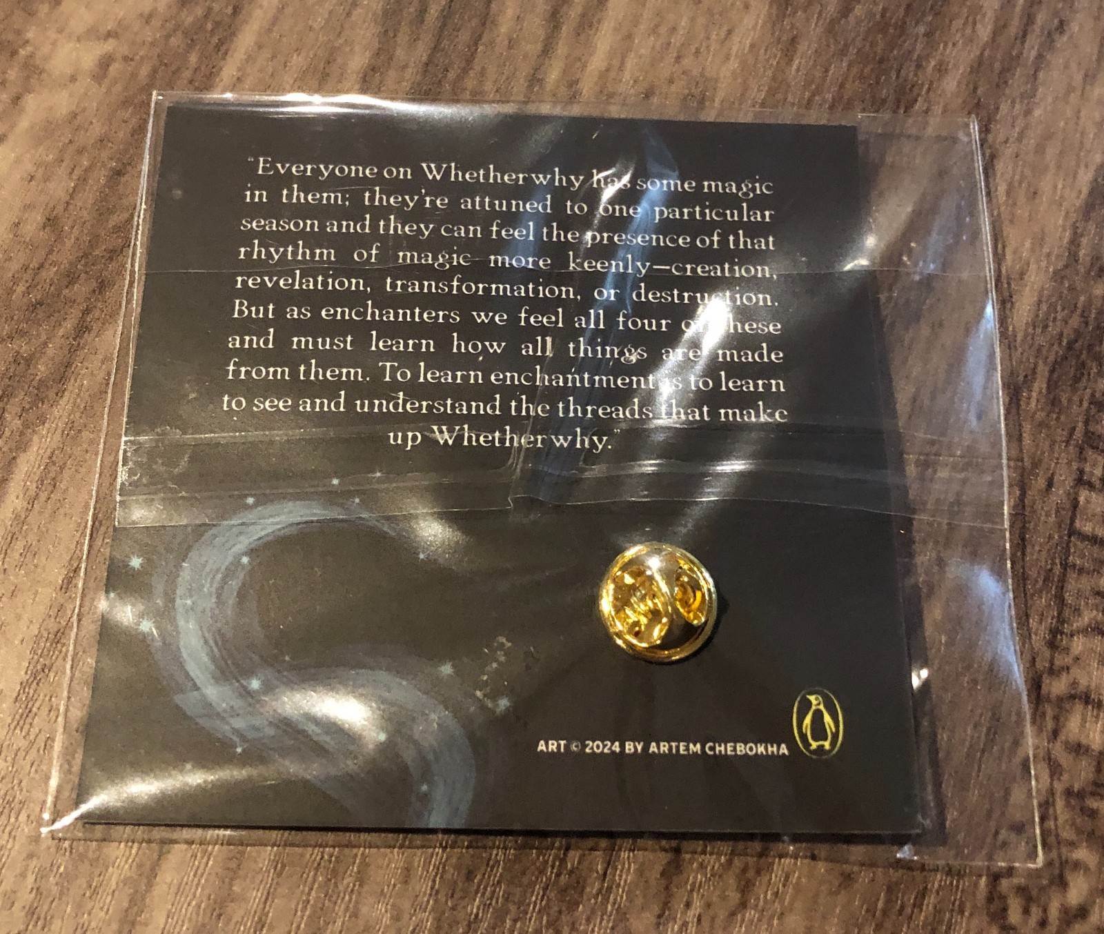 This is a Chronicles Of Whetherwhy The Age Of Enchantment ENCHANTER Novel Book NYCC Comic Con 2025 EXCLUSIVE PROMO METAL PIN Pinback. It is NEW. It is 3/4 inches round tall. This is a NYCC New York Comic Con Exclusive Limited promo item given out at the 2023 Con to a limited amount of fans. DAG
