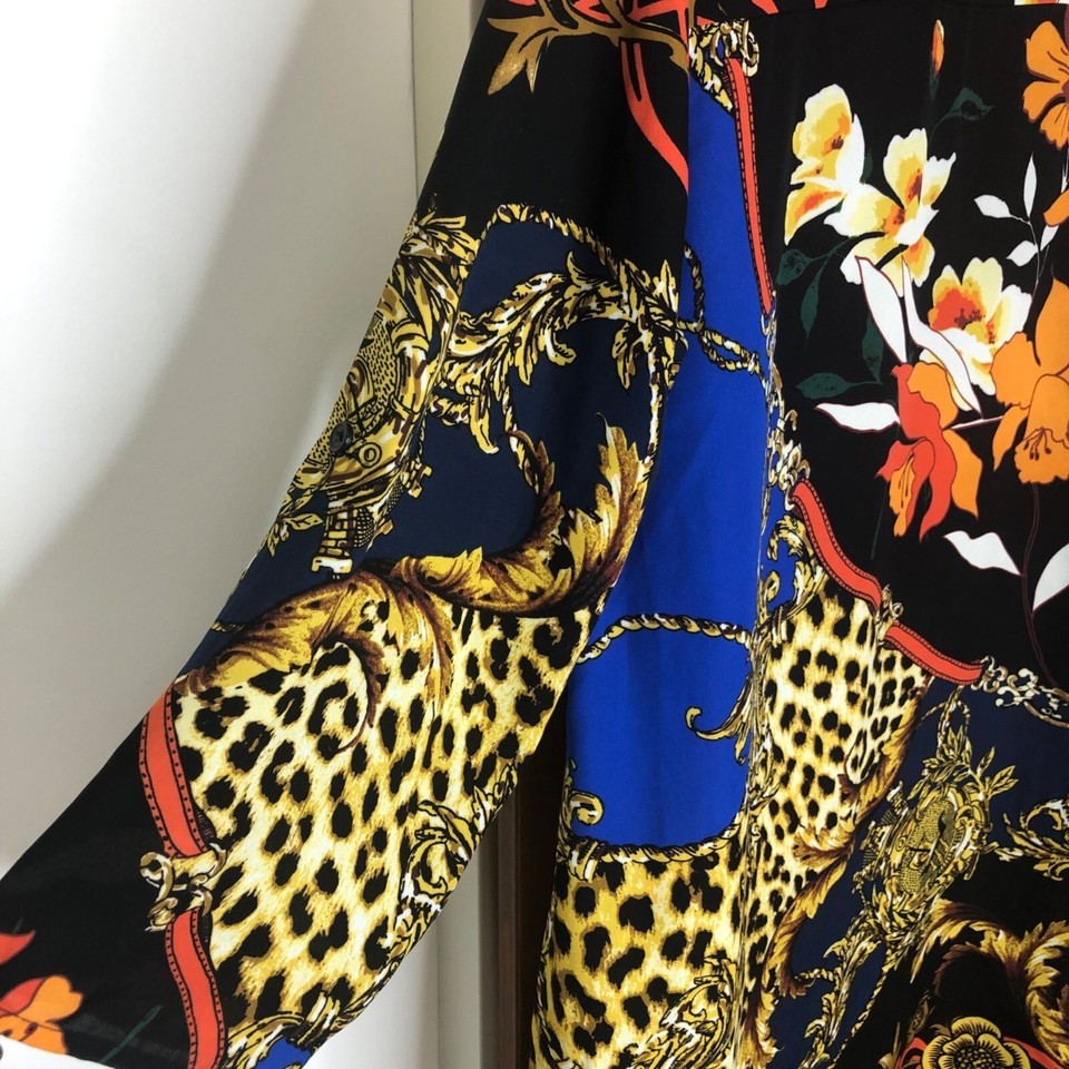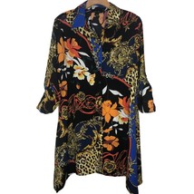 Woman's ButtonUp Shirt Dress Top Sz M Bloomcore Animal Print Career Fall Classic