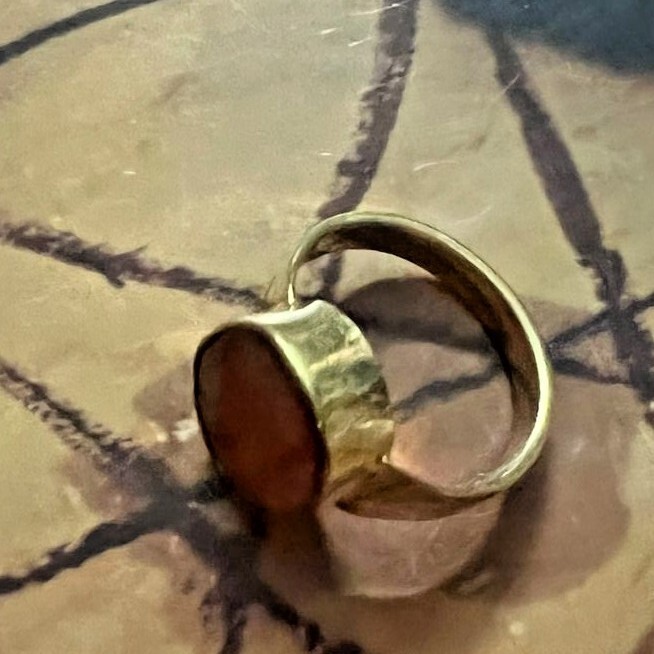 Directement de la main du pretre au celebre temple Mehandipur Balaji au Rajasthan. La bague faisait partie d'un grand collier qui a ete utilise pour orner la principale idole miraculeuse de Sri Hanumanji pendant des decennies. Seul un certain nombre de devots ont recu ces anneaux sacres puissants tres charges.