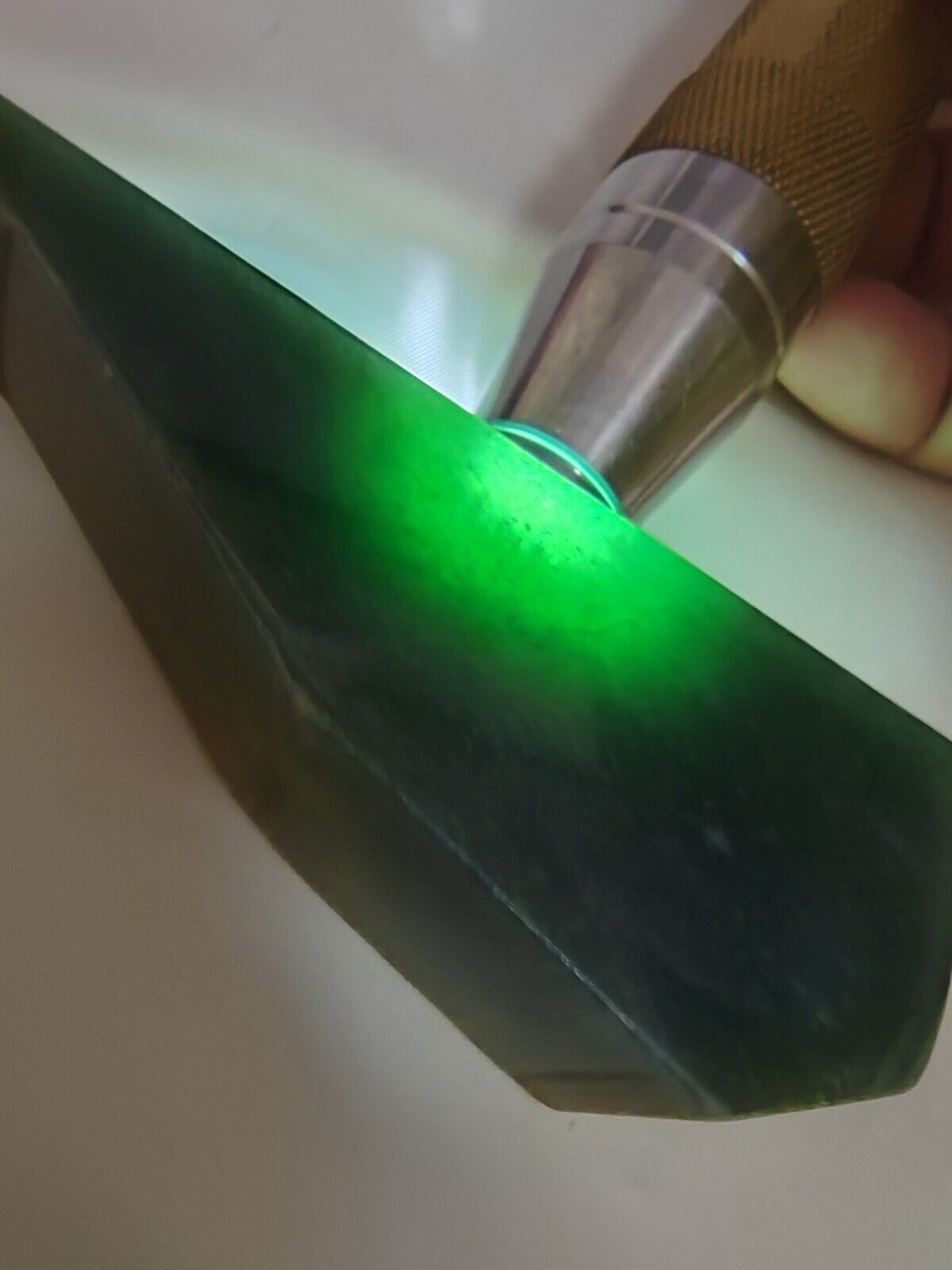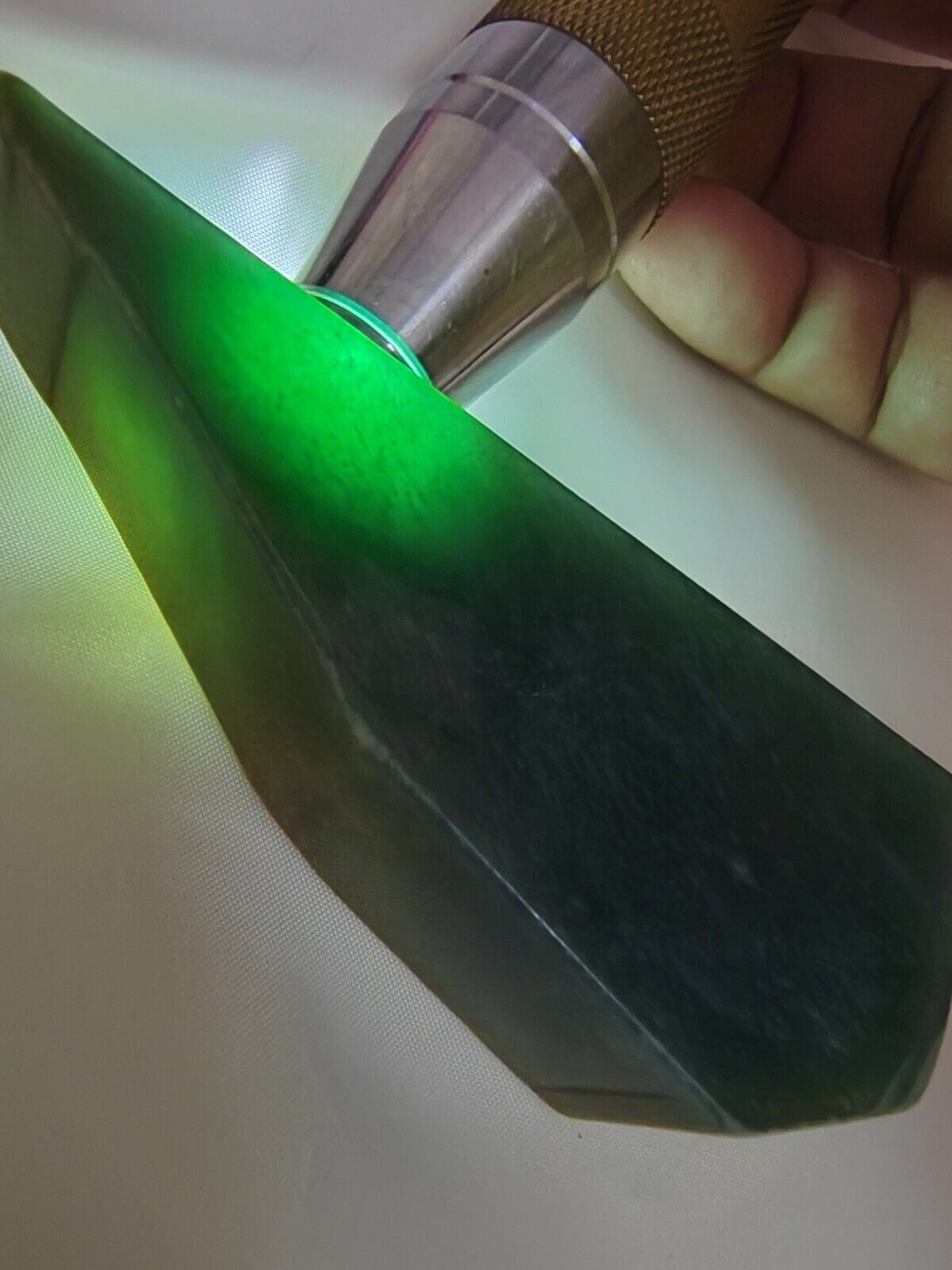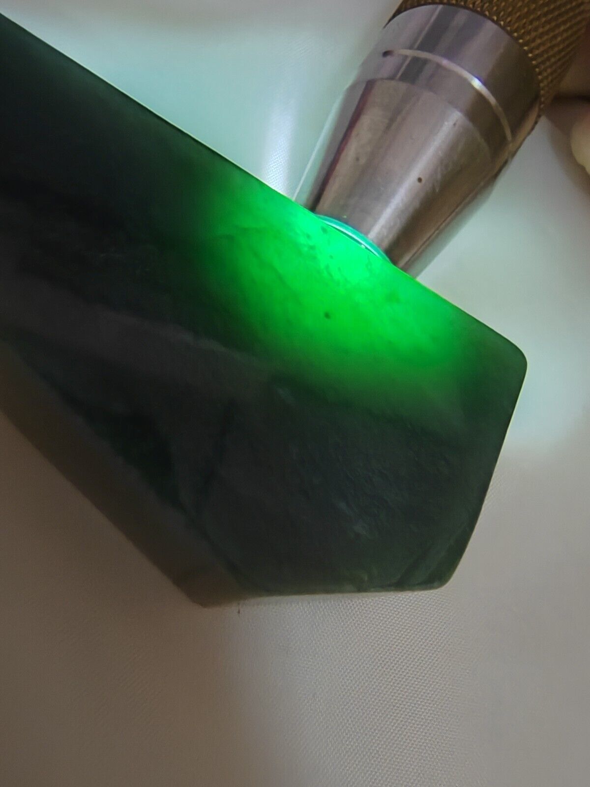 This jadeite specimen originates from Guatemala and stands as a precious collectible. It belongs to the category of ice bluish green jadeite, displaying its delicate texture and distinctive bluish green hue through translucent cut sections. Formed under natural conditions of high pressure and low temperature, jadeite possesses exceptional light sensitivity. Ice bluish green jadeite, coveted by enthusiasts, captivates with its rare coloration, offering an immersive and nostalgic experience. With the passage of time, the rarity of jadeite has garnered increasing attention, leading to a rising demand within the collecting community. Hence, jadeite has earned the title of "King of Jade," renowned for its significant value both as a collector's item and as a lucrative investment. Beyond being a prized collectible, jadeite serves as a premium material for crafting high-end jewelry. Measuring approximately 89.90mm 34.00mm 23.30mm and weighing around 147 grams, equivalent to 735 carats, this specimen showcases the natural beauty of jadeite, exuding a unique allure. This jadeite specimen epitomizes the beauty of nature, possessing a distinct charm that appeals to collectors. It transcends being merely a beautiful gemstone, embodying a cultural symbol and bearing witness to history. Ice bluish green jadeite has long been highly sought-after in the collecting realm and jewelry market, standing out among rare varieties. Its unique coloration and texture make it a coveted item among collectors and investors alike.