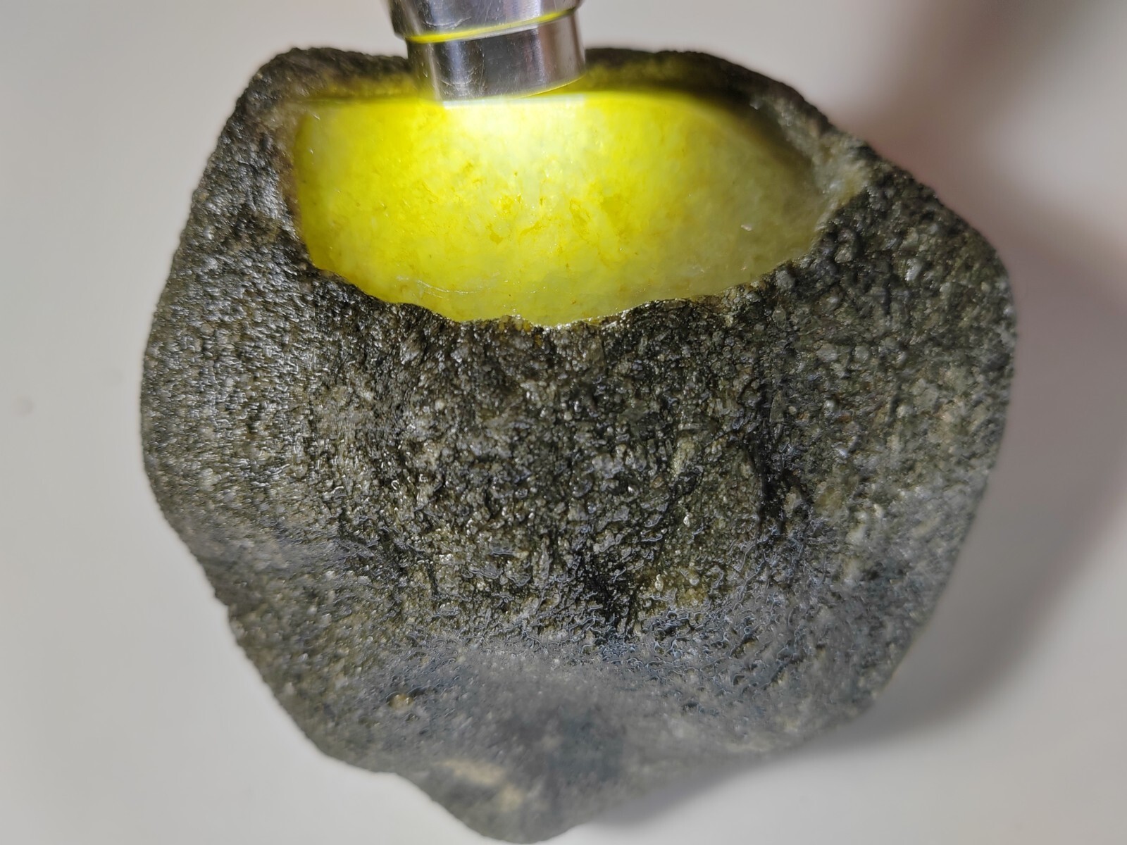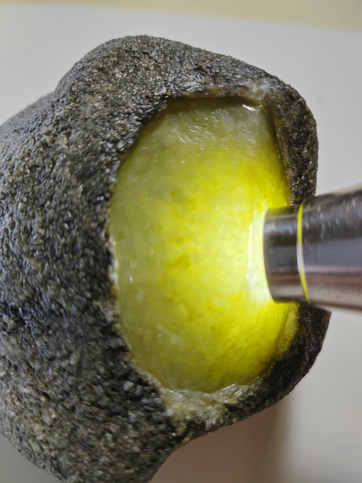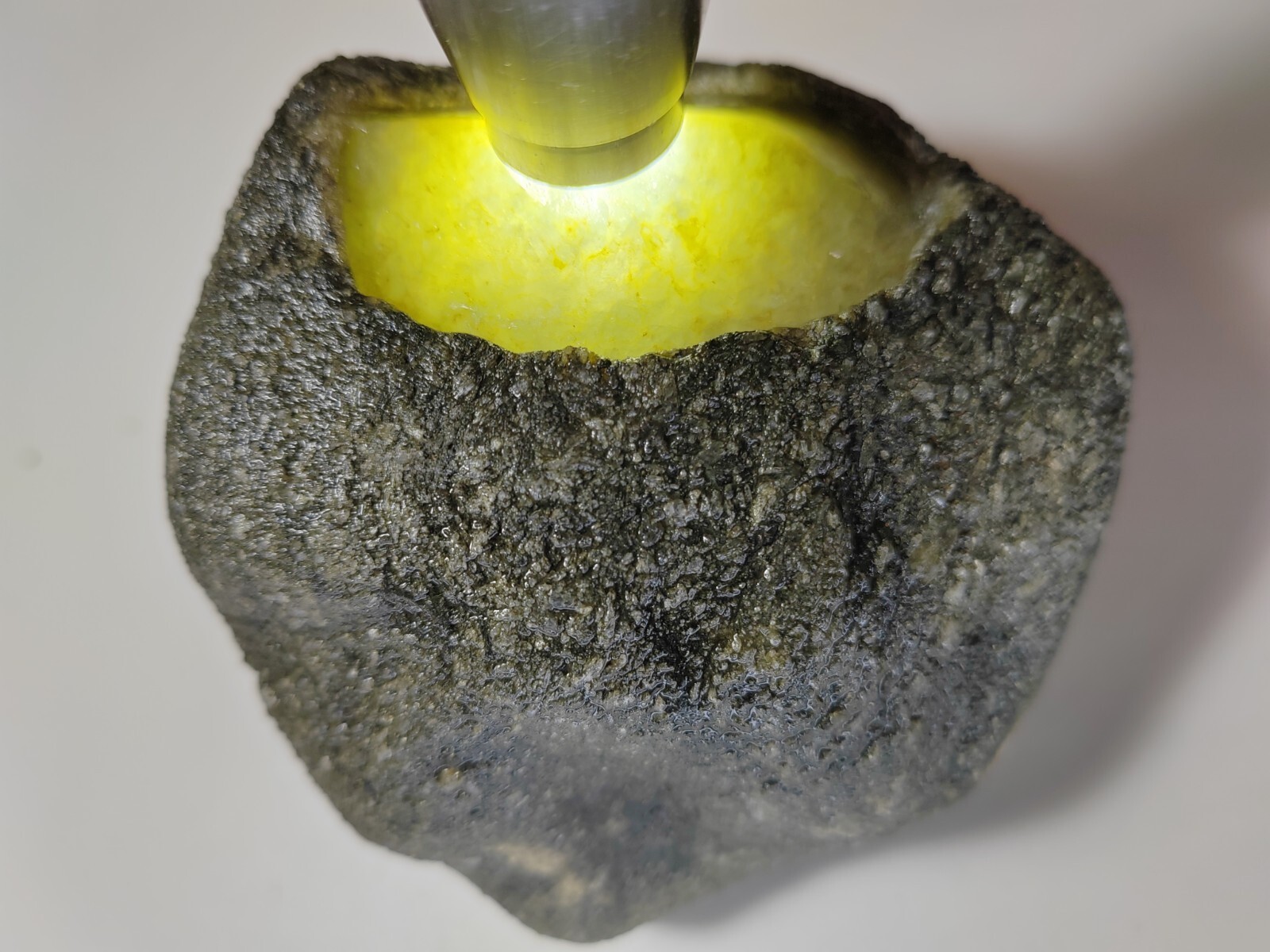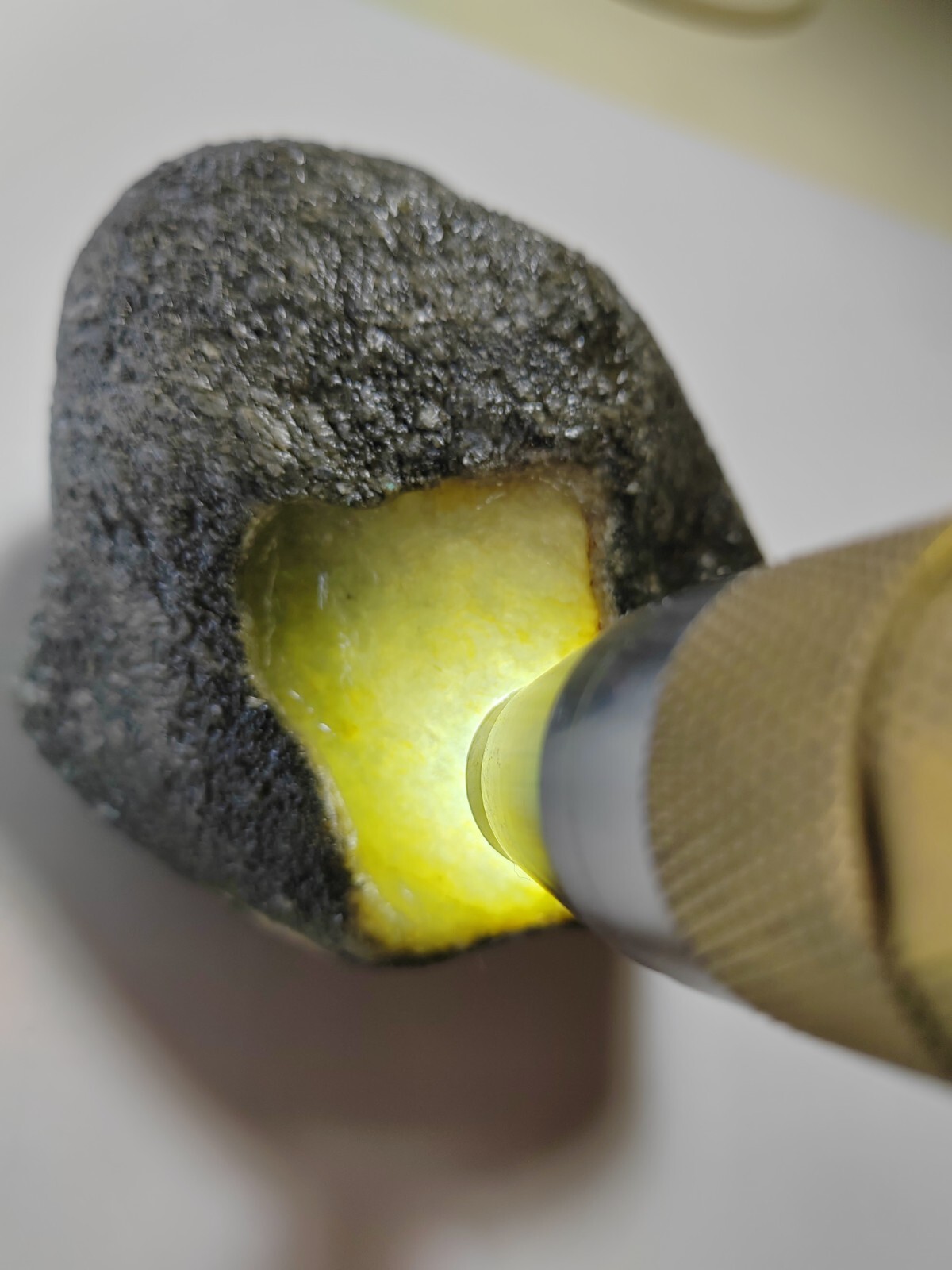 This natural Burmese jadeite specimen is highly esteemed among collectors. It belongs to the variety of "Ice Type Light Yellow Green," delicately showcasing its fine texture and subtle light yellow green hue through localized openings. In the realm of Burmese jadeite, yellow green is revered as the supreme color, prized not only for its vibrant appearance and exceptional durability but also for its universal suitability, transcending distinctions of identity, status, age, or gender. Jewelry crafted from this ice light yellow green jadeite exudes an air of romance and mystique, inviting contemplation and nostalgia. With its rarity and the ever-increasing demand within the collector's market. Therefore, jadeite is hailed as the "King of Jade," not only representing an investment opportunity with significant potential but also serving as a means of preserving value or being fashioned into high-end jewelry. Measuring approximately 87.10mm x 76.50mm x 59.90mm and weighing 557 grams, equivalent to 2785 carats. Such a precious item is destined to become a prideful possession for any collector, emanating captivating charm and carrying a rich tapestry of history and emotion.