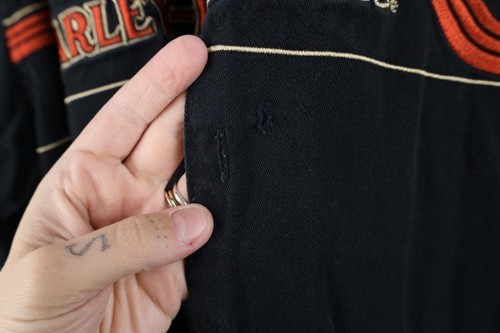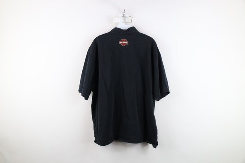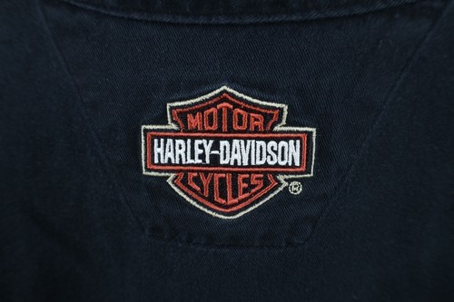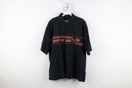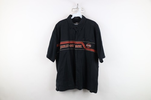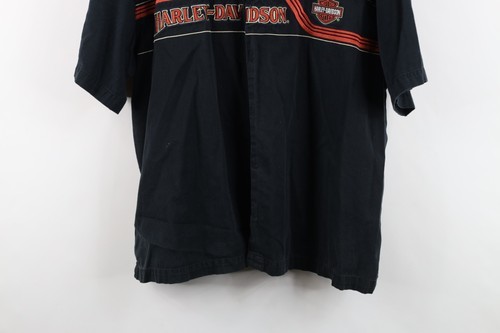Vtg Harley Davidson Mens XL Thrashed Spell Out Mechanic Pit Crew Button Shirt