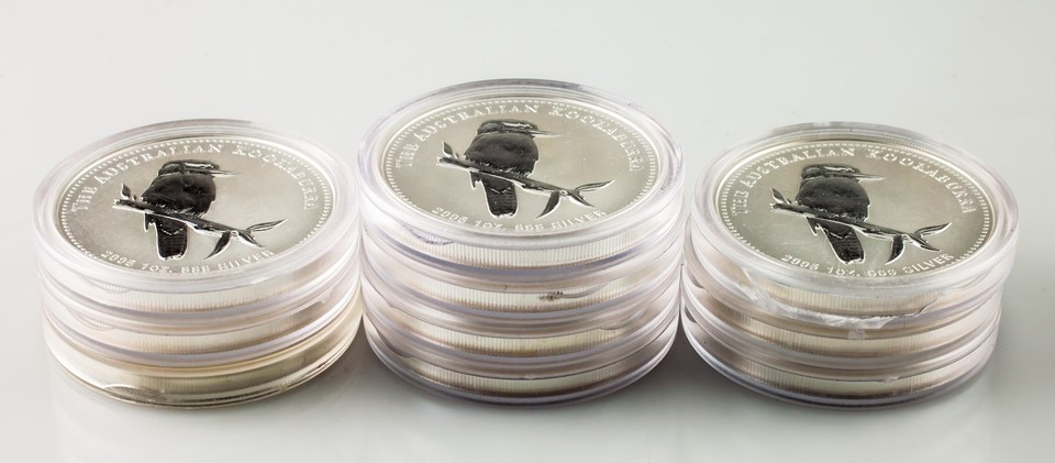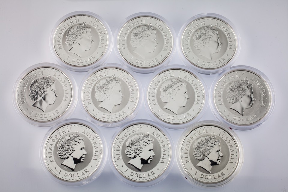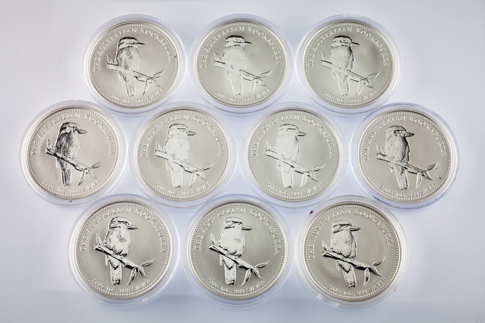 Lot of 10 2005 Australian Silver 1oz Kookaburra (BU Condition) in Capsules