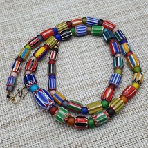 Il s'agit d'un collier long vintage de perles en verre chevron de style venitien africain avec des perles rondes en verre opaques multicolores fabriquees a la main par East Oasis. Les perles ont un style venitien et sont fabriquees a partir de verre.