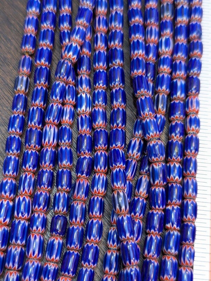 Collier de perles en verre 6x9mm vintage vintage vintage chevron ancien cadeau