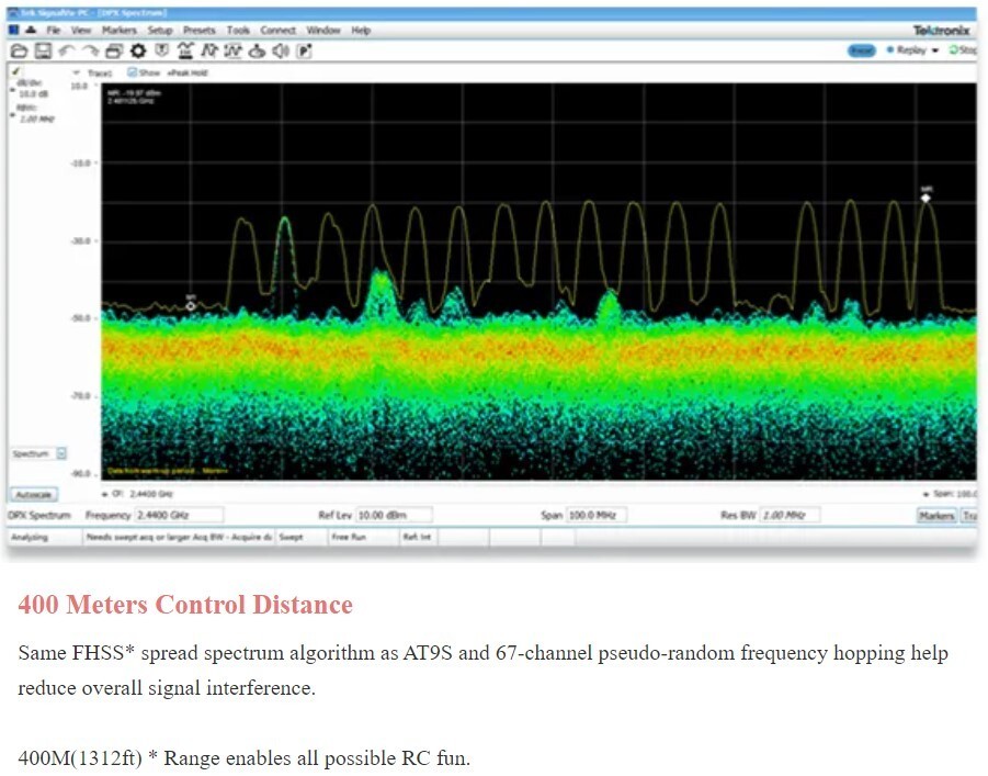 400 meters on the ground, great for FPV