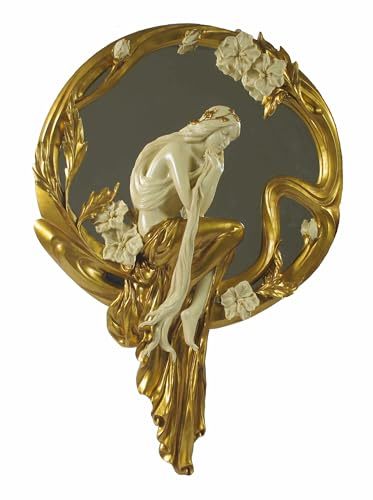 interoknack Art Nouveau Wall Mirror Luxury Lady Figure Decor, Gold Resin Frame