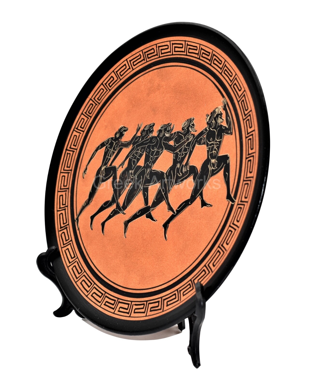 Runners Goddess Athena plate ancient Greek pottery painting decor