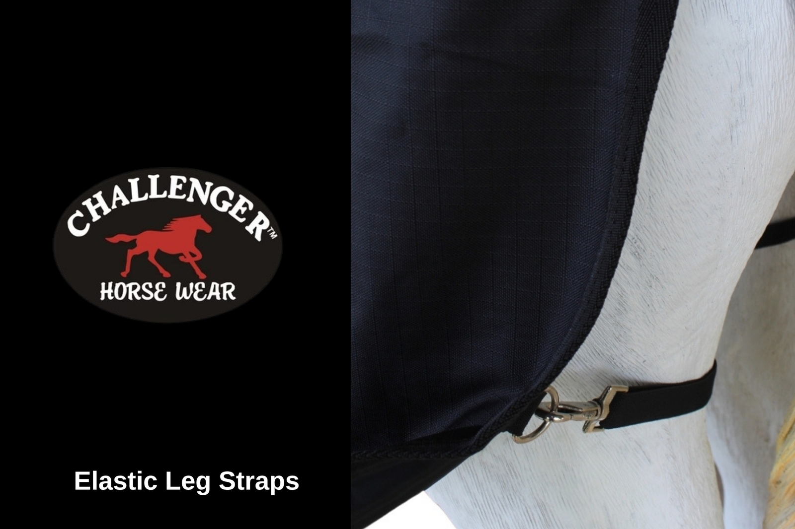 Challenger medium-weight horse blanket features a waterproof, breathable, and durable 1200D outer shell constructed with rip-stop weave fabric. Fleece lined underside to help keep your horse warm. The dual front buckle snap closure, cross surcingles, and elastic leg straps help secure blanket in place and ensure a comfortable fit. The reinforced, double-sewn stress points offer additional reinforcement to help prevent tears, while the fleece wither helps provide protection from rubbing. Shoulder gussets allow for freedom of movement. Tail cover provides additional protection from moisture. Hardware made of rust-free stainless steel.
