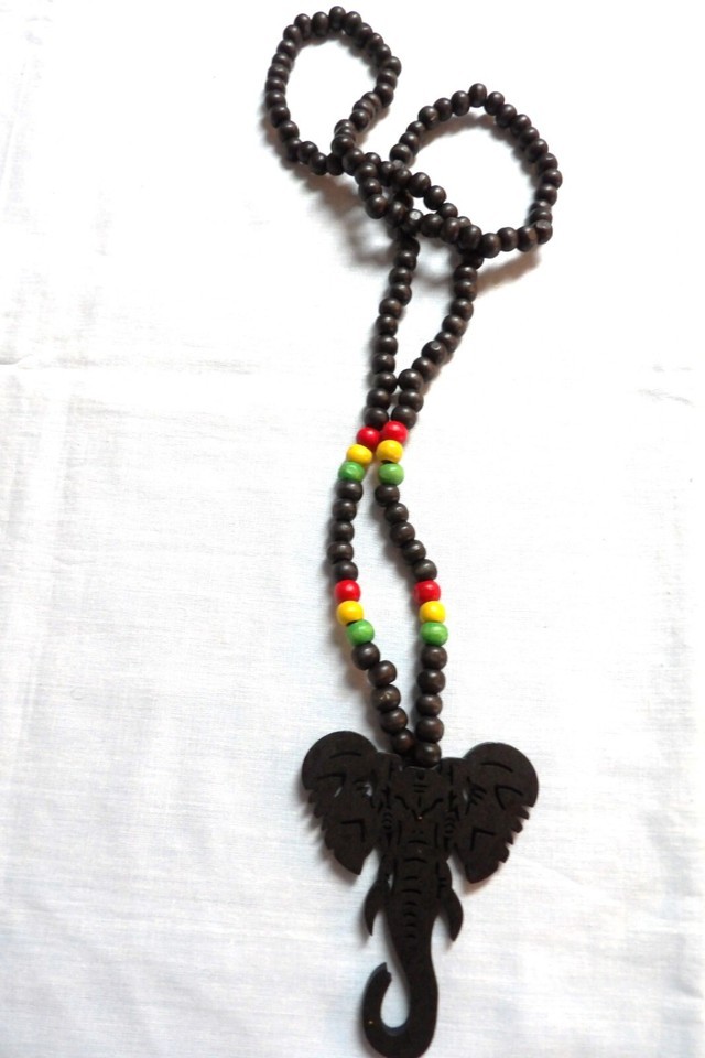 Elephant Wood Pendant On Rasta Wooden Beaded and similar items