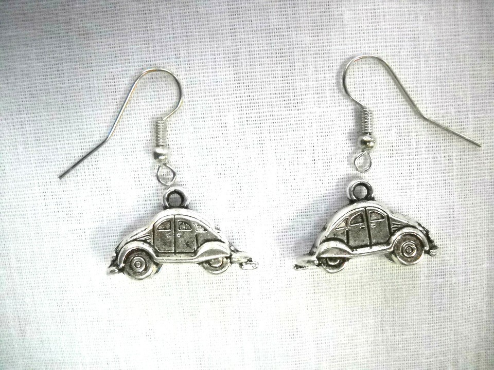 3D VOLKSWAGON CAR VW BUG CARS PEWTER DANGLING CHARM FASHION PAIR OF EARRINGS