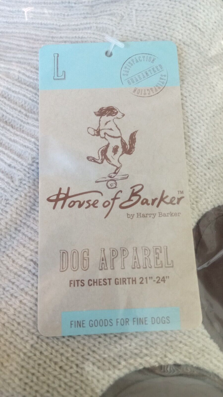 House of Barker Knit/Paw Applique Dog Sweater - Tan (L /21"-24" Chest Girth) NEW