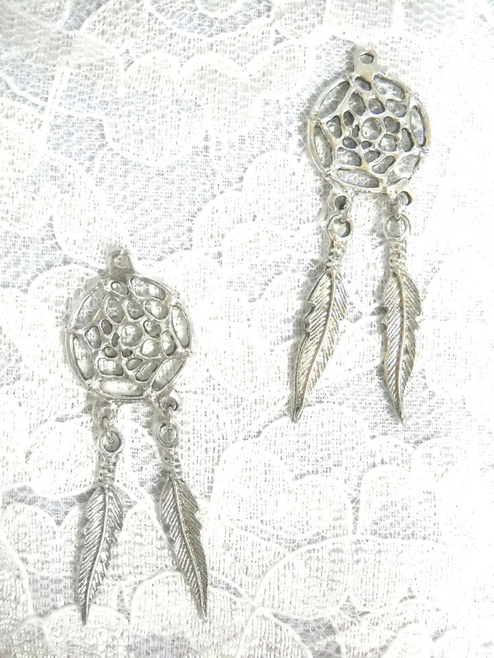 NEW SILVER PEWTER DANGLING DREAMCATCHER CHARM EARRINGS this pewter is nickel lead free hand cast - made in the USA