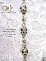 NEW STAINLESS STEEL SKULL & CARD SUIT SPADE 10.25 INCH BRACELET - SKULL TOGGLE