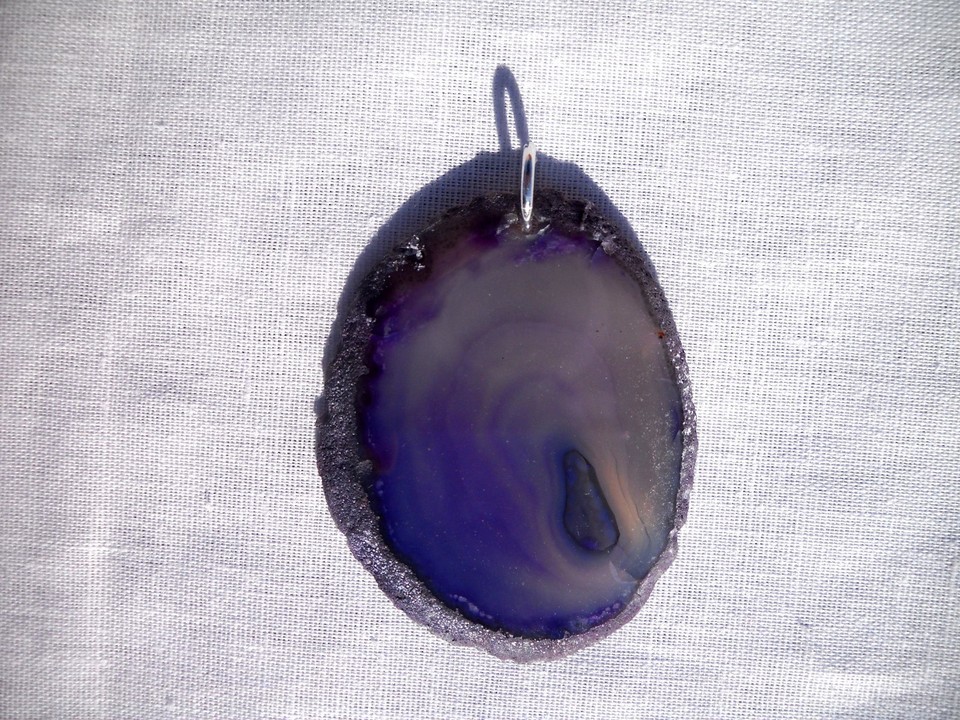 BEAUTIFUL PURPLE GRAY COLOR AGATE SLICED PENDANT with LINE STRIATIONS NATURAL SHAPED EXTERIOR - CUT POLISHED STONE SPECIMEN FROM BRAZIL