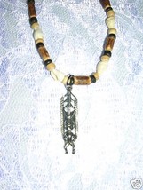 HAWAII ALOHA - CULTURAL TIKI MAN - KU - KUA PROTECTOR - ISLANDER SURF PENDANT on a WOOD LOOK SMALL WHOLE SHELLS WITH COCO BEADS 16 INCH NECKLACE WITH A BARREL SCREW CLASP