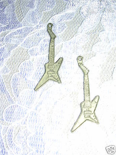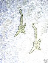 VINTAGE 80'S HEAVY METAL AXE ELECTRIC GUITAR DANGLING PENDANTS PEWTER EARRINGS