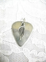 CAST PEWTER GUITAR PICK & ALLOY SILVER ANGEL WING CHARM PENDANT ADJ NECKLACE
