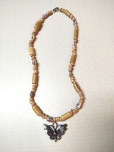 NEW BUTTERFLY w BAMBOO TUBE & SHELL BEADS 16" NECKLACE