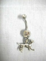 NEW 3D JACK RUSSELL TERRIER CHARM ON DBL CLEAR CZ BELLY BAR BELLY BUTTON RING