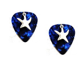 NEW DEEP BLUE GUITAR PICK w/ UNIQUE STAR CHARM EARRINGS