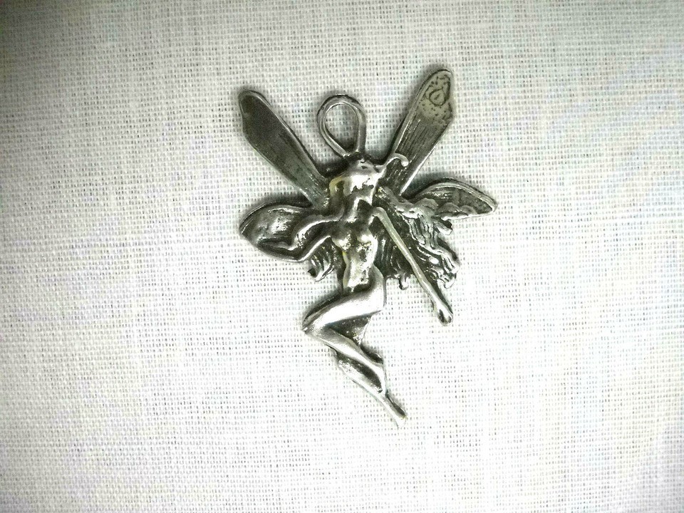 PRETTY WINGED FLYING FAIRY / PIXIE ! THIS IS A WORN LOOK VINTAGE STYLE PENDANT - SEE PHOTOS