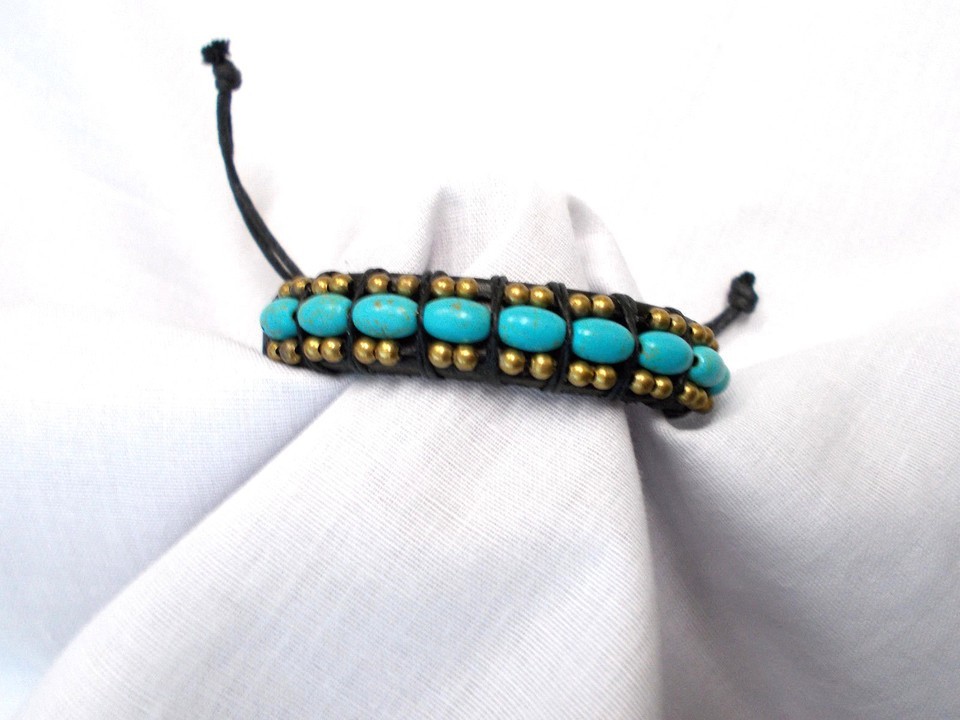 Turquoise Gems & Brass Beads Cord Wrapped and similar items