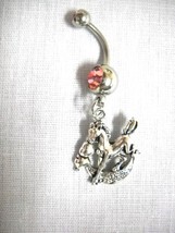 HORSE PONY JUMPING THE MOON CHARM DOUBLE 14g LIGHT PINK CZ BELLY RING NAVEL BAR
