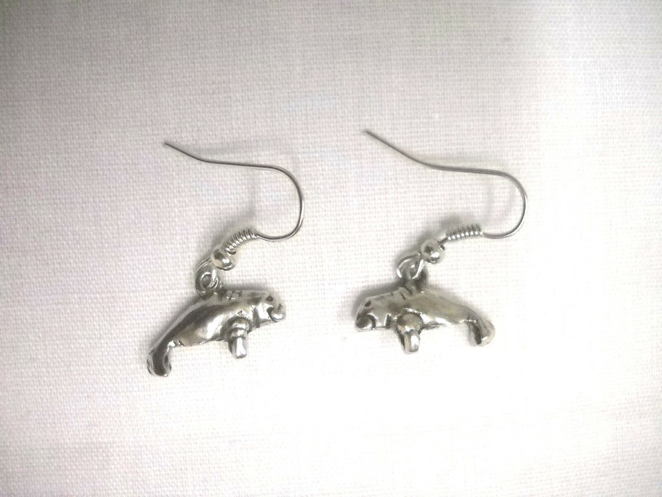 Sea Cow Manatee Endangered Species Florida Full Body Pewter Charms Earrings