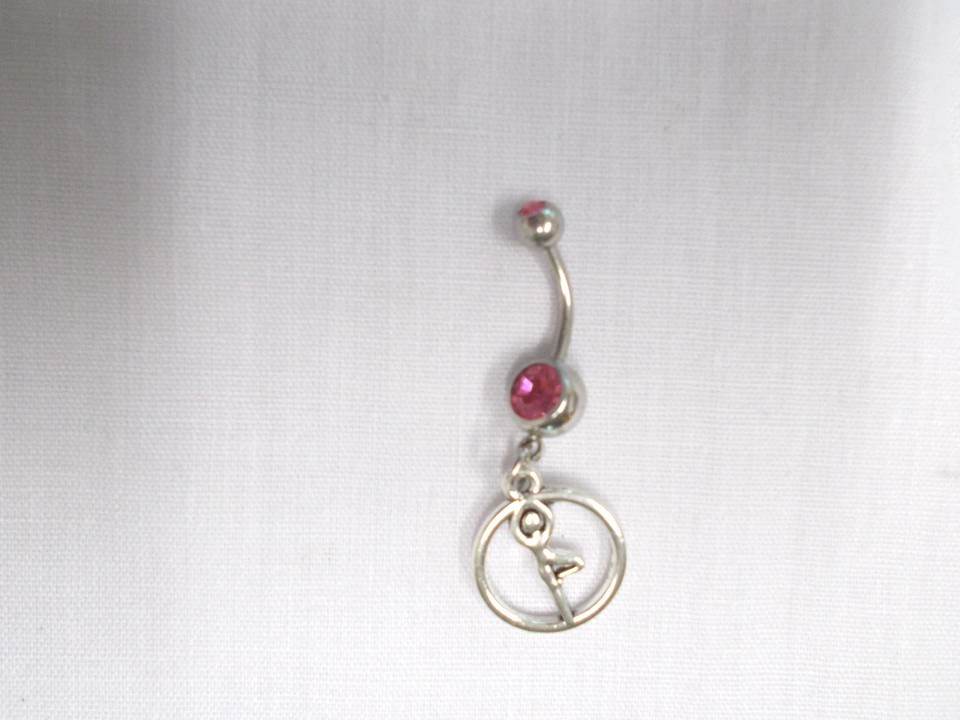 ROUND STANDING TREE YOGA POSE CHARM on 14g HOT PINK CZ NAVEL BELLY RING BARBELL