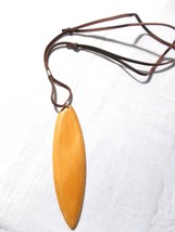 HUGE SURFBOARD BLONDE NATURAL WOOD ON ADJUSTABLE FAUX LEATHER 34" NECKLACE