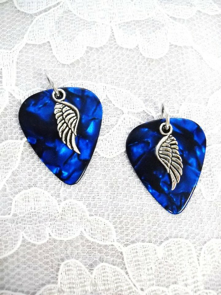 Angel Wing Charms on Deep Blue Guitar Picks and similar items
