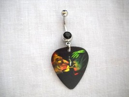 LION OF JUDAH BOB MARLEY LIGHT IT UP PRINTED GUITAR PICK 14g BLACK CZ BELLY RING