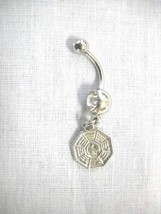 NEW 2 SIDED FENG SHUI YIN YANG OCTAGON CHARM on CLEAR 14g NAVEL BELLY RING BAR