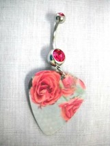 PINK VICTORIAN ROSE FLOWER / ROSES PRINTED GUITAR PICK 14g PINK CZ BELLY RING