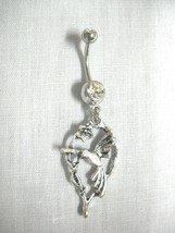 HUMMINGBIRD FLOWER VINE DROPLET CHARM CLEAR CZ 14g BELLY BAR NAVEL RING