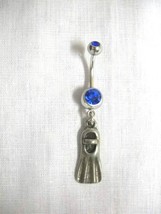 BEACH FUN PEWTER SNORKELING SCUBA FLIPPER / DIVER CHARM 14g BLUE CZ BELLY RING