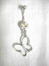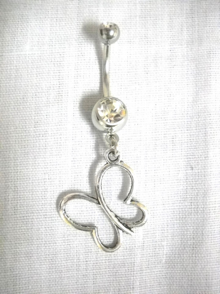 NEW BUTTERFLY SILHOUETTE SILVER ALLOY CHARM ON DAZZLING DBL CLEAR CZ BELLY RING