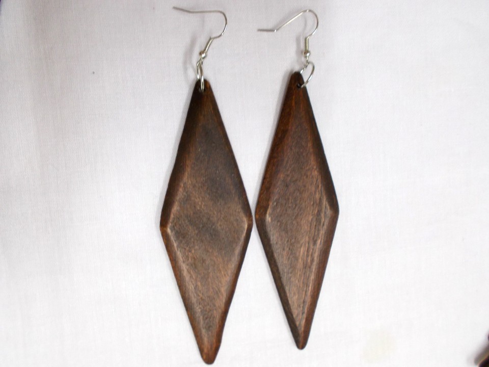X-LARGE BOLD DARK BROWN STAINED WOOD POINTS TRIANGLE GEOMETRIC SHAPE EARRINGS