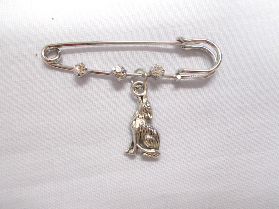 3 CLEAR CRYSTAL 2 INCH PIN WITH A OUTDOOR WILDLIFE DESERT COYOTE / HOWLING WOLF SILVER ALLOY CHARM DANGLING