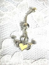 FRIENDSHIP LOVE HANDS HEART CROWN CELTIC CLADDAGH 14g CLEAR BELLY RING BARBELL