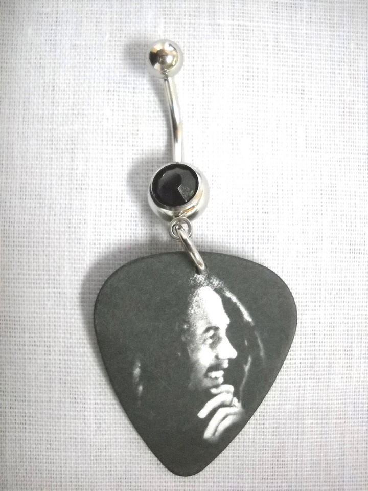 BOB MARLEY SILVER SILOUETTE & BLACK PICTURE GUITAR PICK CZ BELLY BAR NAVEL RING
