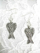 Silver Alloy Twin Angel Wings Angel WIng Criss Cross Pair of Earrings
